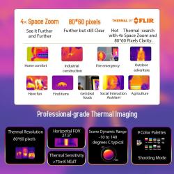 Pametni robustni telefon BlackView BV8900, 8 GB + 256 GB, z vgrajeno termalno kamero, je zasnovan za zahtevne pogoje in združuje izjemno zmogljivost ter napredno tehnologijo. Opremljen je s termalno kamero FLIR, ki omogoča natančno toplotno zaznavanje, ter ga poganja osemjedrni procesor MediaTek Helio P90 za zanesljivo in hitro delovanje. Naprava ima veliko baterijo s kapaciteto 10.000 mAh, ki podpira 33 W hitro polnjenje, kar zagotavlja dolgotrajno uporabo. Na voljo je 8 GB RAM-a z možnostjo razširitve za dodatnih 8 GB, kar skupaj omogoča do 16 GB pomnilnika, ter 256 GB notranjega pomnilnika, ki ga je mogoče razširiti do 1 TB.