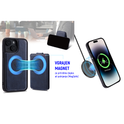 Za večjo uporabnost ovitka poskrbi tudi žepek na zadnji strani ovitka, kamor lahko shranite kartice. Žepek se na ovitek pritrdi z magnetom, zato lahko če želite, uporabljate ovitek tudi brez žepka. Žepek lahko služi tudi kot stojalo za telefon - za lažji ogled video vsebin.