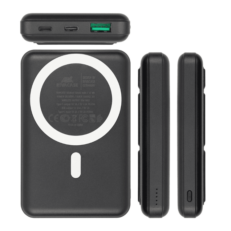 Rivacase VA2604 Magsafe Qi BREZŽIČNA 15W + QC/PD 20W 10000 mAh prenosna baterija s stojalom