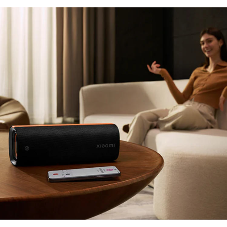 Opremljen je z 3D barvno osvetlitvijo, ki se sinhronizira z ritmom glasbe in ustvari pravo zabavno vzdušje. Zvočnik sledi družinskemu oblikovalskemu jeziku Xiaomi z elegantno kombinacijo oranžne in črne barve ter prefinjeno obliko, ki združuje stil in funkcionalnost.