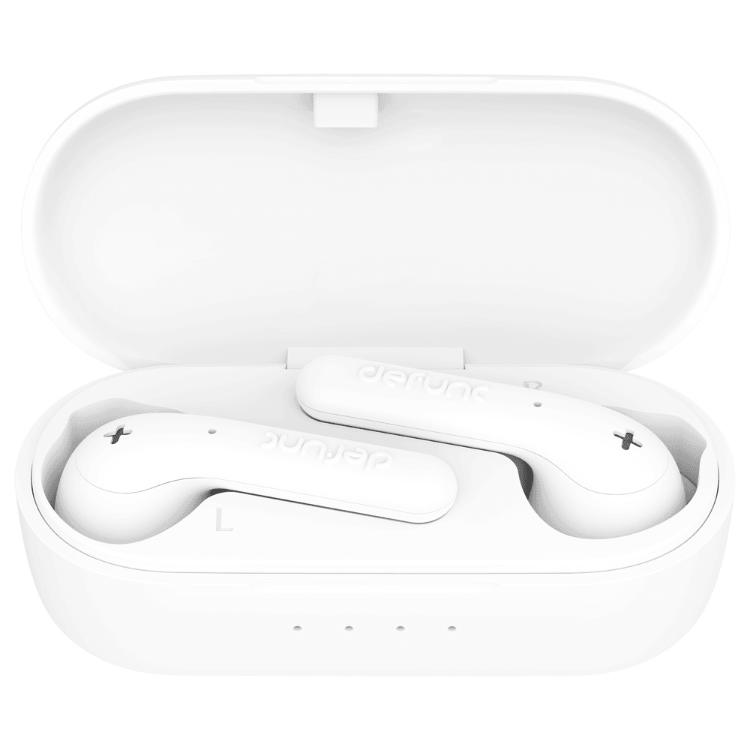 Defunc bluetooth slu\u0161alke True Basic TWS stereo bele združujejo sodoben dizajn in udobje. Z lahkimi materiali in prepustno membrano zagotavljajo odličen zvok brez pritiska v ušesih. Uporabite jih lahko z enim gumbom, napolnite pa jih lahko do 3-krat s priloženim powerbankom.