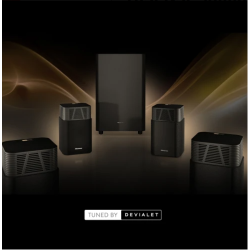 Visokotonec, nizkotonec in navzgor usmerjeni zvočniki, so natančno uglašeni za natančen in čist prostorski zvok. Kompaktna zasnova, a izjemna zmogljivost.
