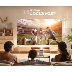- Izjemna ločljivost! - Uživajte v realističnem filmskem doživetju, saj projektor omogoča ogled vsebin v odlični ločljivosti z izjemnimi barvami, poleg tega pa zagotavlja ostro sliko in odličen barvni kontrast.
