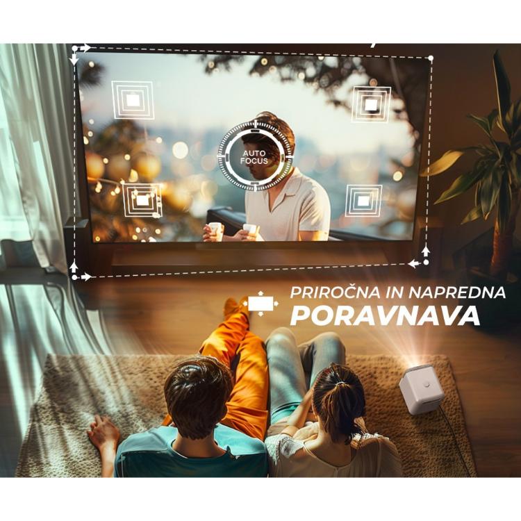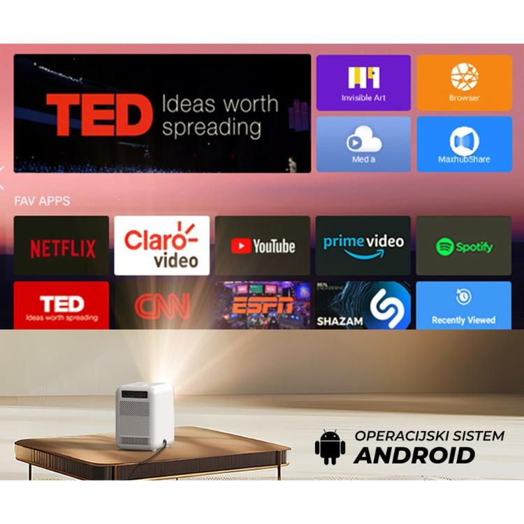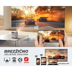 - WiFi & Bluetooth - Zahvaljujoč brezžičnemu WiFi povezovanju in vgrajeni Bluetooth povezavi, lahko uporabljate internet in projektor povezujete z ostalimi zunanjimi pametnimi napravami.