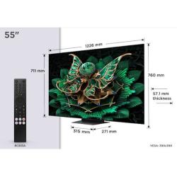 TCL 55C71K je 4K QD-Mini LED televizor, ki zagotavlja izjemen kontrast, globoko črnino in natančne barve s tehnologijo HDR PREMIUM. Z 144Hz Motion Clarity Pro zagotavlja gladko gibanje in osupljivo sliko. Dolby Atmos zvočni sistem in Bang & Olufsen audio zagotavljata vrhunski zvok. Televizor vključuje Google TV in AiPQ Pro Processor, kar omogoča enostavno uporabo in dostop do vsebin po vaši izbiri.