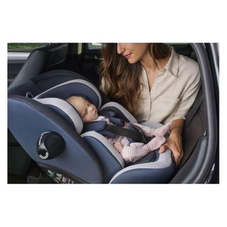 Zahvaljujoč 360-stopinjskemu vrtenju lahko sedež obrnete proti vratom vozila za lažje nameščanje otroka, nato pa v položaj vožnje v nasprotni ali v smeri vožnje. Upravljanje poteka z enim sprednjim gumbom, ki je vedno na dosegu roke.