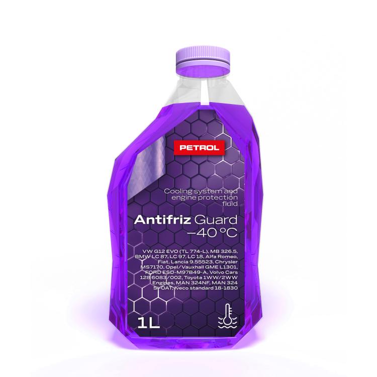 Antifriz Guard -40 °C je razredčena, za uporabo pripravljena univerzalna koncentrirana hladilna tekočina za zaščito hladilnih sistemov vozil pred zmrzovanjem in korozijo. Izdelana je po najsodobnejši tehnologiji iz monoetilen glikola in nove generacije Si-OAT aditivov, kar zagotavlja optimalno oksidacijsko stabilnost, preprečuje korozijo kovinskih delov, nastajanje usedlin in oblog ter poskrbi za učinkovito hlajenje motorja. Hladilna tekočina ne vsebuje aminov, nitritov, boratov in 2-etilheksanojske kisline.