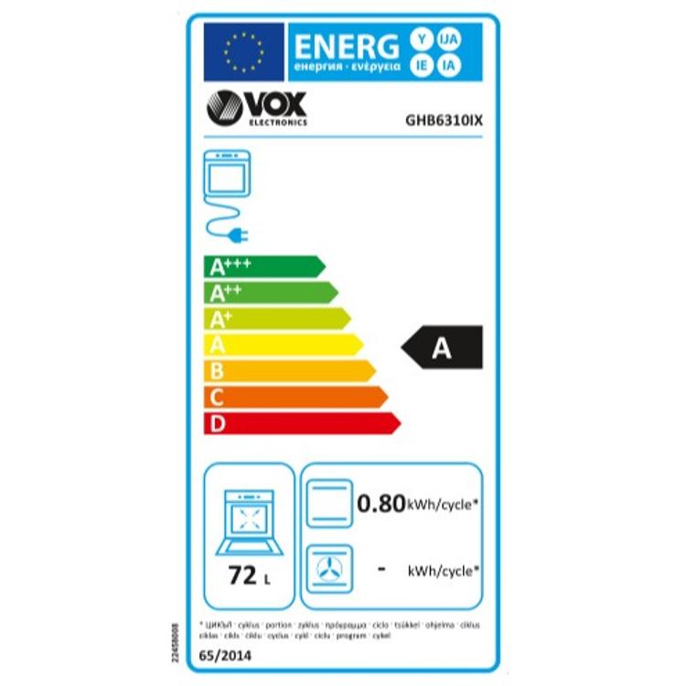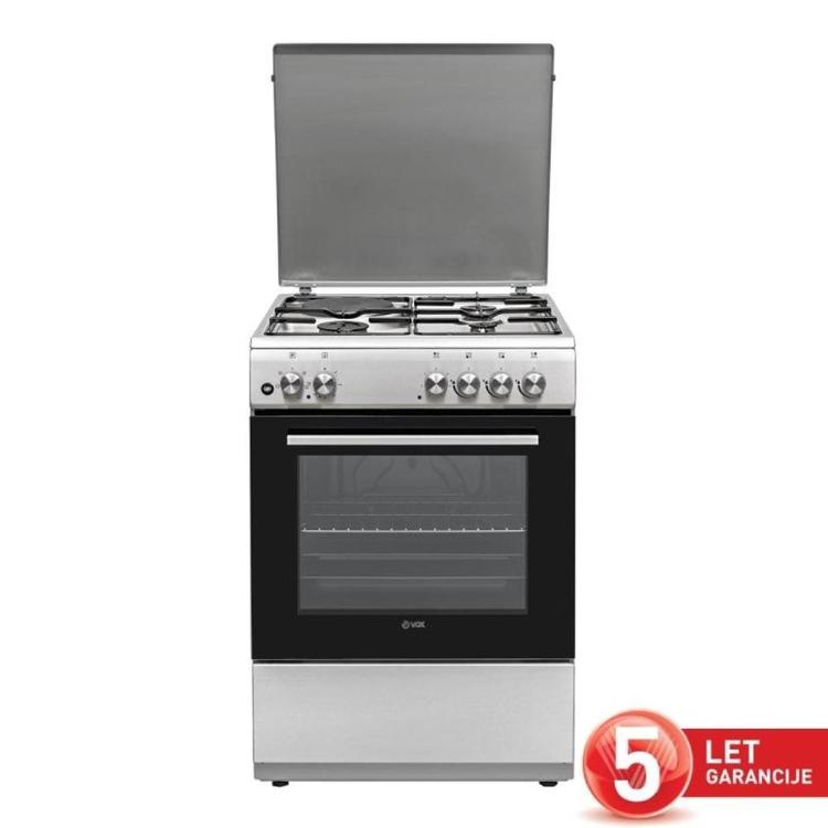 VOX kombinirani štedilnik GHB 6310 IX ponuja vsestranskost in prilagodljivost pri kuhanju zahvaljujoč kombinirani kuhalni plošči. Trije plinski gorilniki, vključno s hitrim (10 cm, 3000 W), polhitrim (7,5 cm, 1750 W) in pomožnim (5,5 cm, 1000 W), ter dodatna električna plošča (18 cm, 1500 W) omogočajo pripravo različnih jedi na optimalni temperaturi. Električna pečica s prostornino 72 litrov zagotavlja popolno pečenje z zgornjim in spodnjim gretjem, žarom in dvojnim žarom, kar omogoča raznolike načine kuhanja.