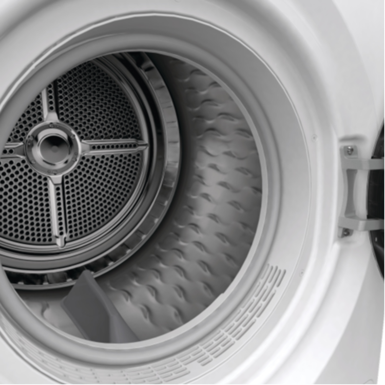 Enostaven vmesnik z osrednje nameščenim gumbom za izbiro vam omogoča, da začnete sušiti v samo treh enostavnih korakih: vklopite sušilnik, izberite program in pritisnite start! Brez podmenijev za izbiro dodatnih funkcij in nastavitev, a z možnostjo prilagoditev na velikem zaslonu na dotik, ste lahko prepričani, da bodo vaša oblačila posušena točno tako, kot želite.