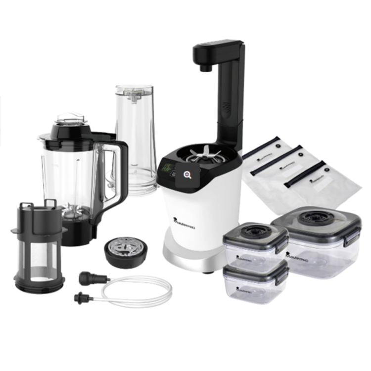 Zahvaljujoč vakuumski tehnologiji, ki odstrani zrak iz notranjosti mešalnika in 700 ml vakuumskemu vrču, boste pripravili gostejše in bogatejše smutije z manj pene. Poleg tega omogoča 1-metrska vakuumska cev sesanje zraka iz vakuumskih posod in vrečk za hrano, kar podaljša svežino vaših živil.