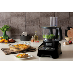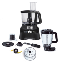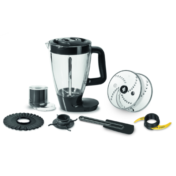 Multipraktik DoubleForce je opremljen z velikim naborom namenskih in učinkovitih orodij: rezilo, prevlečeno s titanom, za sekljanje in rezanje vseh vrst sestavin; dva reverzibilna diska iz nerjavnega jekla za grobo ribanje / rezanje in fino ribanje / rezanje zelenjave ali sira; mešalna posoda za mešanje okusnih juh, sokov, smutijev itd.; gnetil za pripravo kakršnega koli testa od lahkega do težkega; sekljalnik za fino obdelavo čebule, česna, zelišč itd.; disk za stepanje smetane za sladice in emulgiranje omak, kot je majoneza.