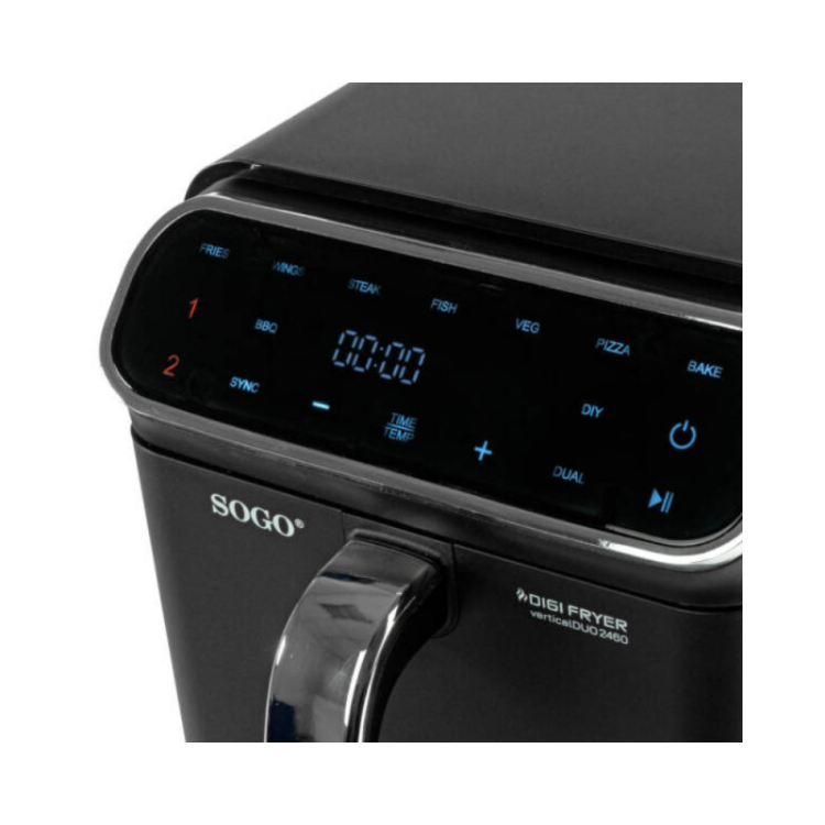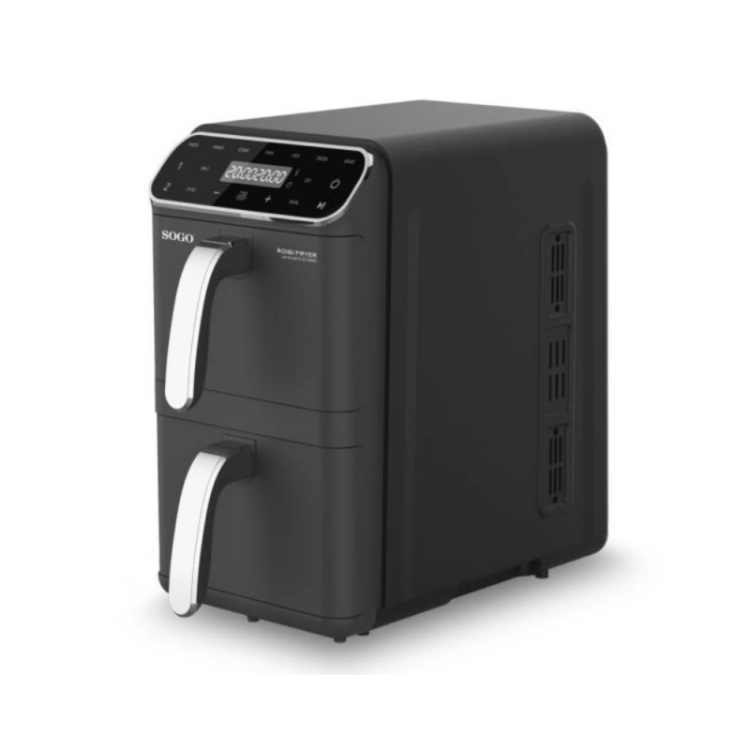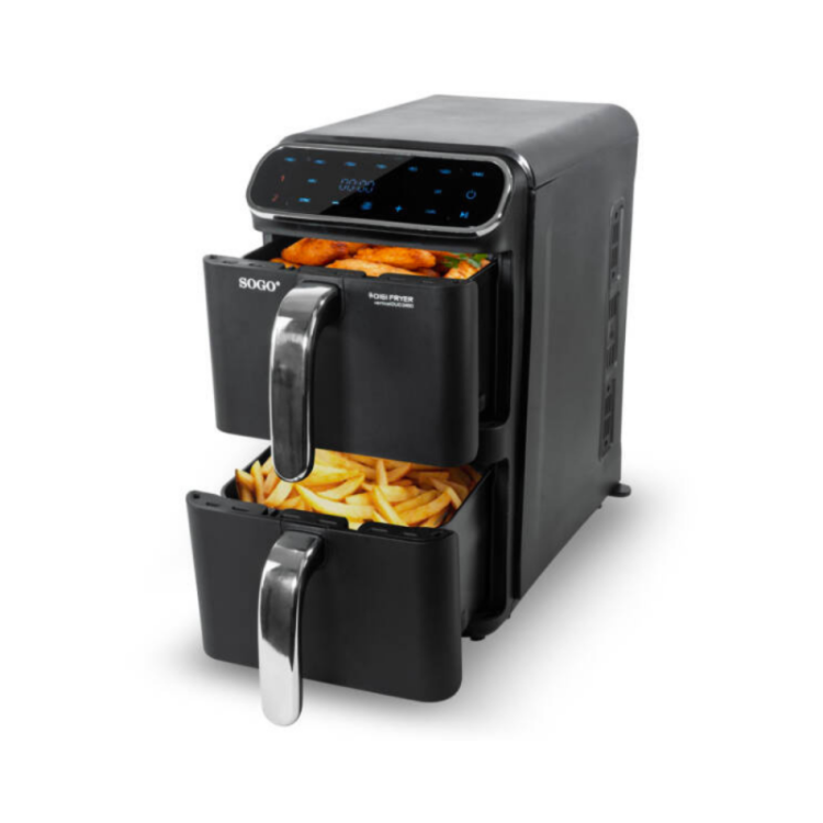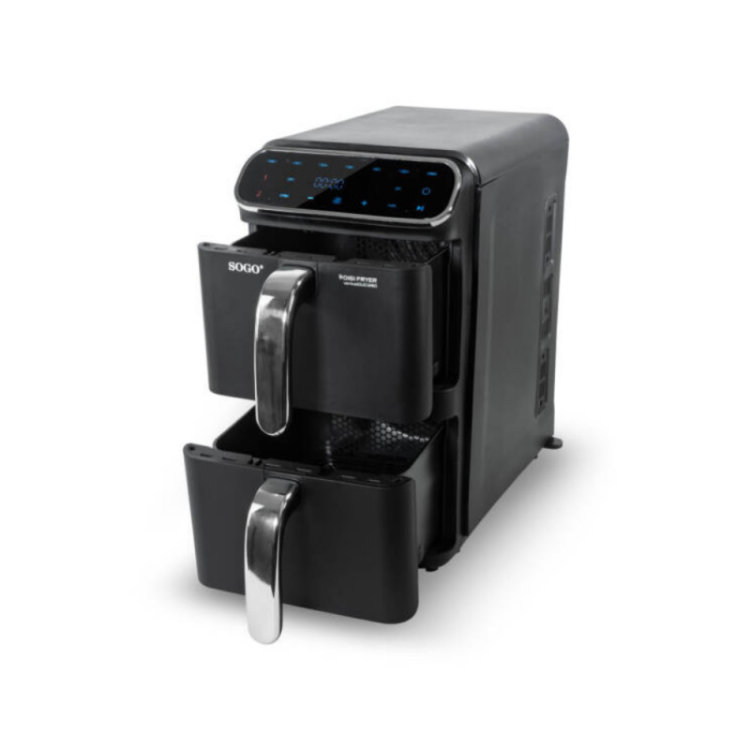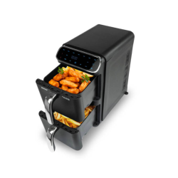 Cvrtnik z dvojnimi conami in 360° vročim zrakom zagotavlja hitro, hrustljavo in enakomerno pripravo hrane z minimalno olja!