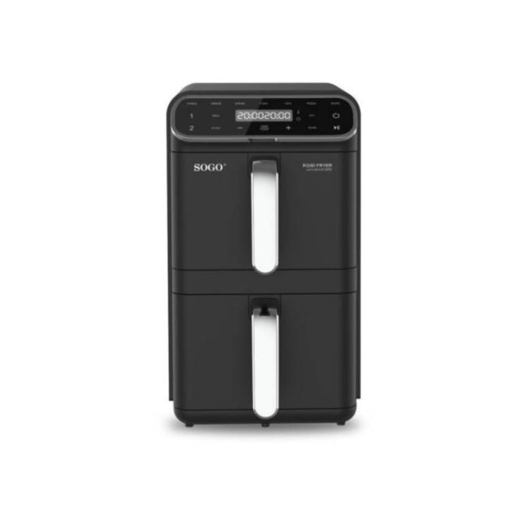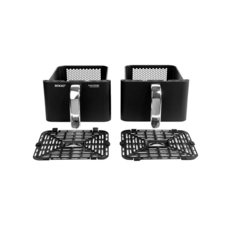 Vključuje dve veliki košari za cvrtje s prostornino 5,5 l, ki omogočata kuhanje velikih količin hrane hkrati. Rešetka za cvrtje in silikonske klešče vam omogočajo enostavno in varno rokovanje s hrano, brez nevarnosti opeklin.