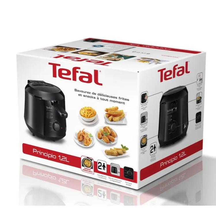 Izberite kvalitetni manjši cvrtnik Fry Principio black priznane znamke Tefal s 1000 W moči, ki lahko hkrati pripravi 600 g hrane z 1,2 l olja.