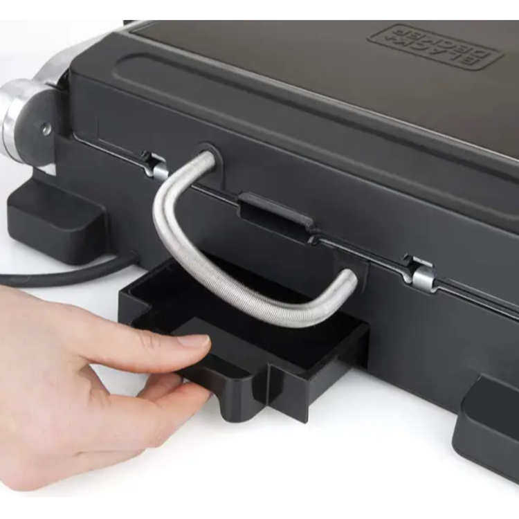 Kontaktni žar z XXL površino in s točno nastavitvijo temperature. Black+Decker BXGR2000E ima rešitev za vsako hrano – odstranljive plošče z ločeno nastavitvijo temperature, ki jo je mogoče razširiti v veliko območje žara. LCD zaslon prikazuje površinsko temperaturo in časovnik do 99 minut.