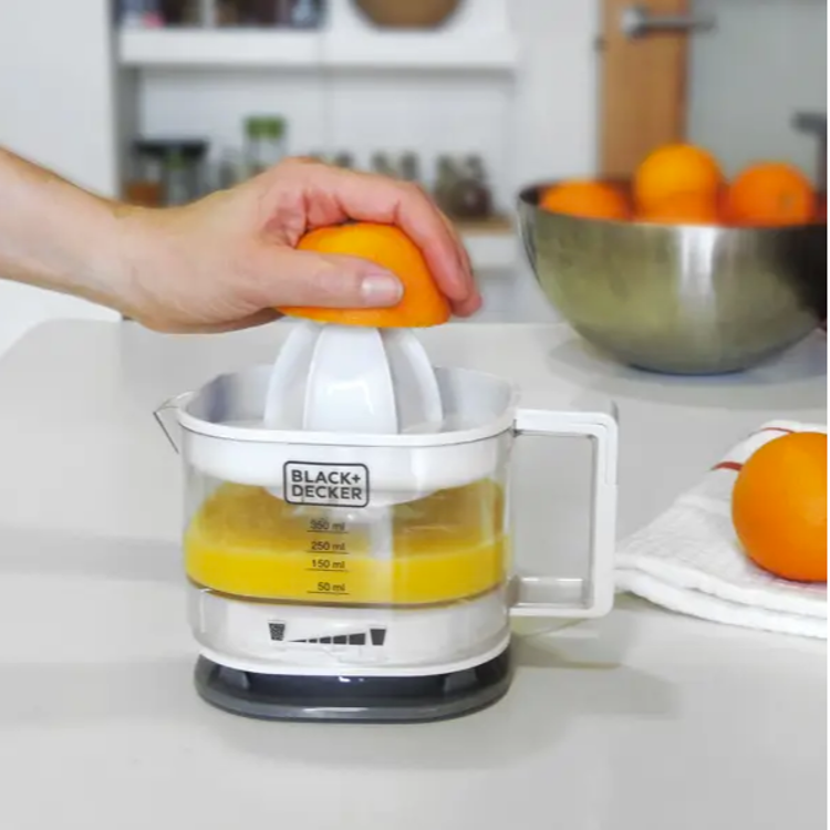 Ožemalnik z močjo 25 W in prozorno posodo s prostornino 350 ml. Black+Decker BXCJ25E ponuja dvosmerno vrtenje, enostavno nastavljivo prilagajanje z vrtenjem in zelo enostavno čiščenje zahvaljujoč možnosti pomivanja v pomivalnem stroju. Prostor za navijanje napajalnega kabla