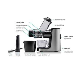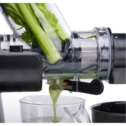 Predhodno rezanje ni potrebno. Ena hitrost bo zadostovala vsem vašim potrebam. Presenetila vas bo edinstvena funkcija povratnega načina delovanja. Ta vam bo pomagala pri hitrem reševanju v primeru zamašitve. Pravi prihranek časa, če poskušate iztisniti sok iz sadja ali zelenjave z veliko vlakni! DC motor - zmogljiv in zanesljiv motor, vas ne bo pustil na cedilu. Je energijsko zelo učinkovit in zasnovan za dolgo življenjsko dobo.