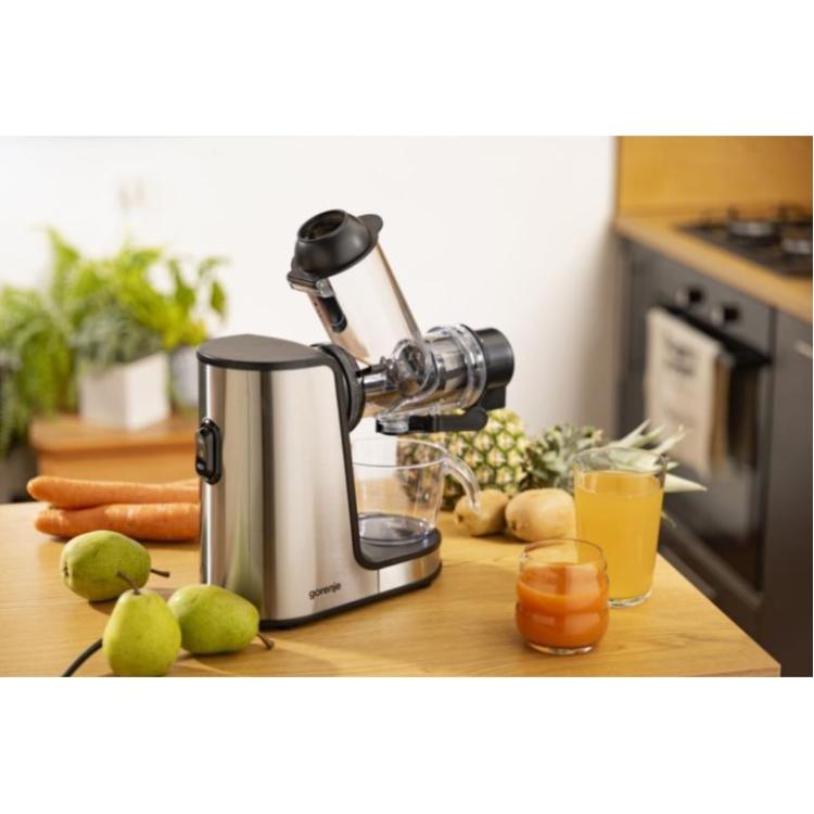Proces stiskanja soka omogoča posebej zasnovan polžasti vijak, ki zdrobi sadje in zelenjavo. Vse sestavine se filtrirajo skozi mrežasto cedilo, ki prepušča minimalno količino pulpe, hkrati pa ohranja vsa hranila.