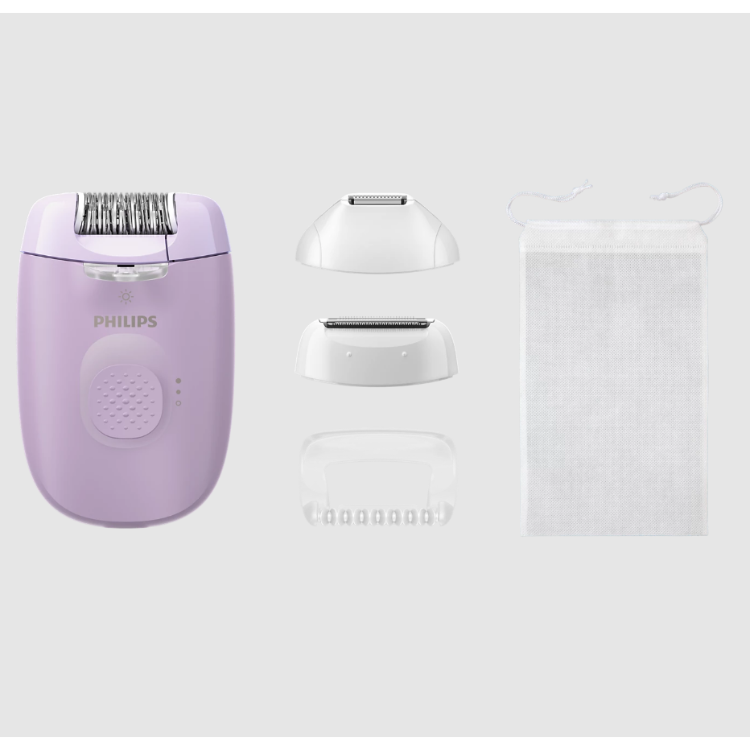 Gladka koža se začne tukaj. Z glavnikom prirežite daljše dlačice za prijetnejši občutek na koži. Epilirajte želene predele in namestite masažni pokrovček za nežnejši občutek pri epilaciji. Brivno glavo uporabite za hitro urejanje, ko se odpravljate na pot, pa lahko epilator shranite v torbico in ga vzamete s seboj.