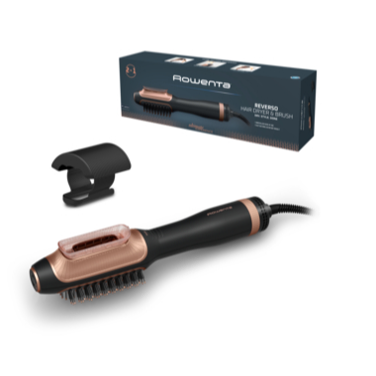Predstavljamo Reverso by Rowenta, sušilnik za lase 2 v 1 in krtačo na vroč zrak, ki spreminja urejanje pričeske in predstavlja revolucijo na področju las. Uporabite stran s sušilnikom za hitro predsušenje v prvem koraku, v drugem pa preklopite na stran s krtačo na vroč zrak in oblikujte svojo pričesko do konca. Preklapljajte med obema načinoma z enim preprostim klikom. Ta genialna ekskluzivna tehnologija Rowenta optimizira vašo rutino urejanja pričeske in nudi naravne rezultate sušenja v hipu!