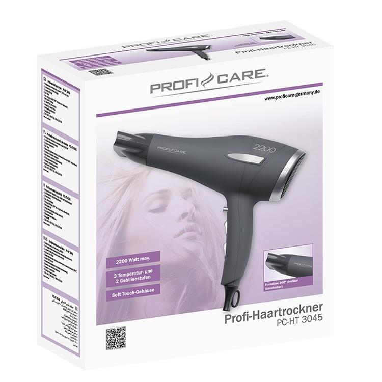 Profi care sušilnik las deluje z močjo 2200 W. Na voljo ima 2 temperaturi delovanja, 3 nastavitve hitrosti in pretok hladnega zraka Cool shot. Ročaj in ohišje sta mehka na oprijem, zato je uporaba enostavna. Ponaša se z zaščito proti pregrevanju in zanko za obešanje. Priložen ima snemljiv koncentrator zraka in odstranljivo zadnjo mrežico.