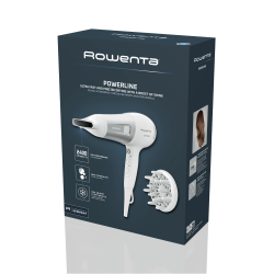 Sušilnik za lase Rowenta Powerline je zasnovan tako, da vam omogoča, da izgledate najbolje, samozavestno in s sijajem, ki nikoli ne mine. Ionic Booster Technology ponuja sušilnik za lase, ki na vaše lase prinese milijone negativnih ionov, zmanjša statično elektriko in pusti lase gladke, enostavne za oblikovanje ter izboljšajo sijaj. Sistem Advanced Care postavlja idealno temperaturo za večjo zaščito. Visoko učinkovito sušenje je brez napora, z energijsko varčno tehnologijo Effiwatts in množico pametnih funkcij in oblike.