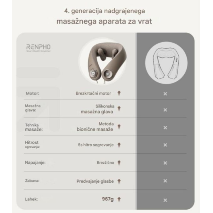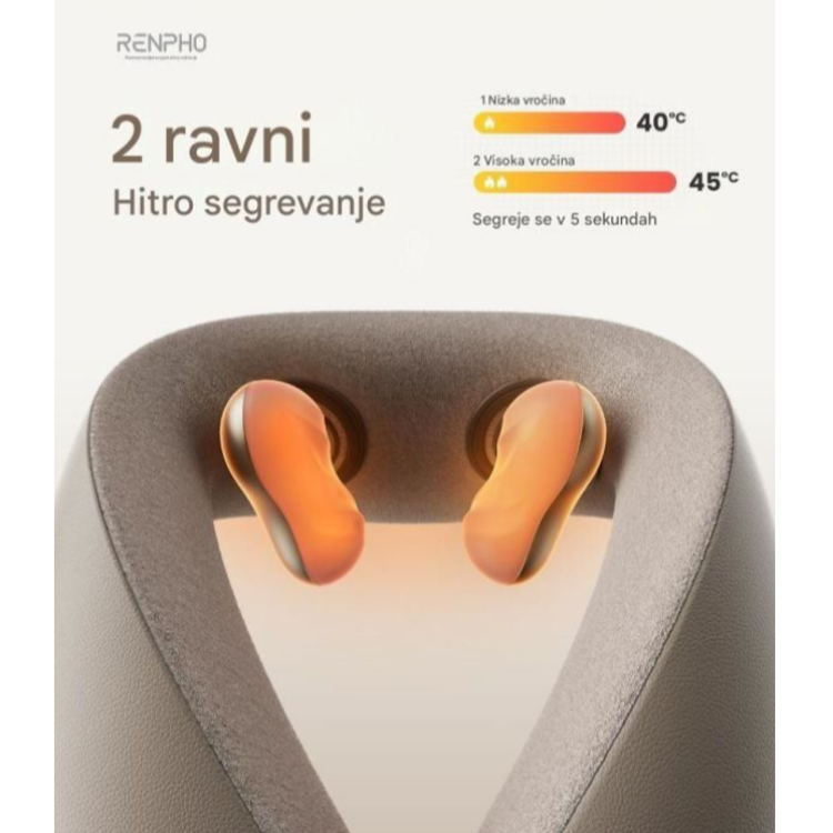 Sprostite napetost kjerkoli – RENPHO brezžični masažer za vrat s toploto in globokim 6D gnetenjem za popolno lajšanje bolečin.