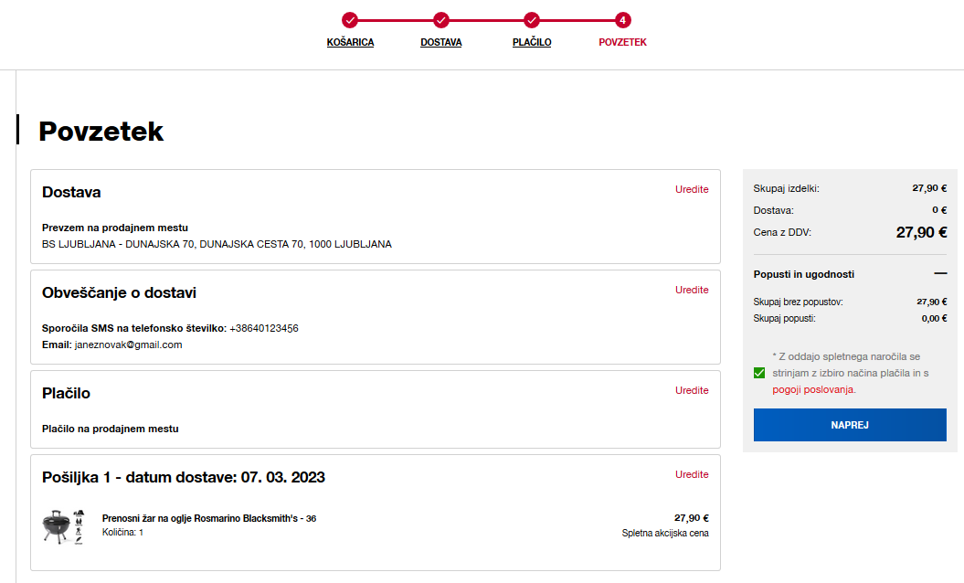 Pozorno preverite povzetek svojega naročila in naročilo oddajte. Povzetek naročila vam bomo posredovali na vaš elektronski naslov.