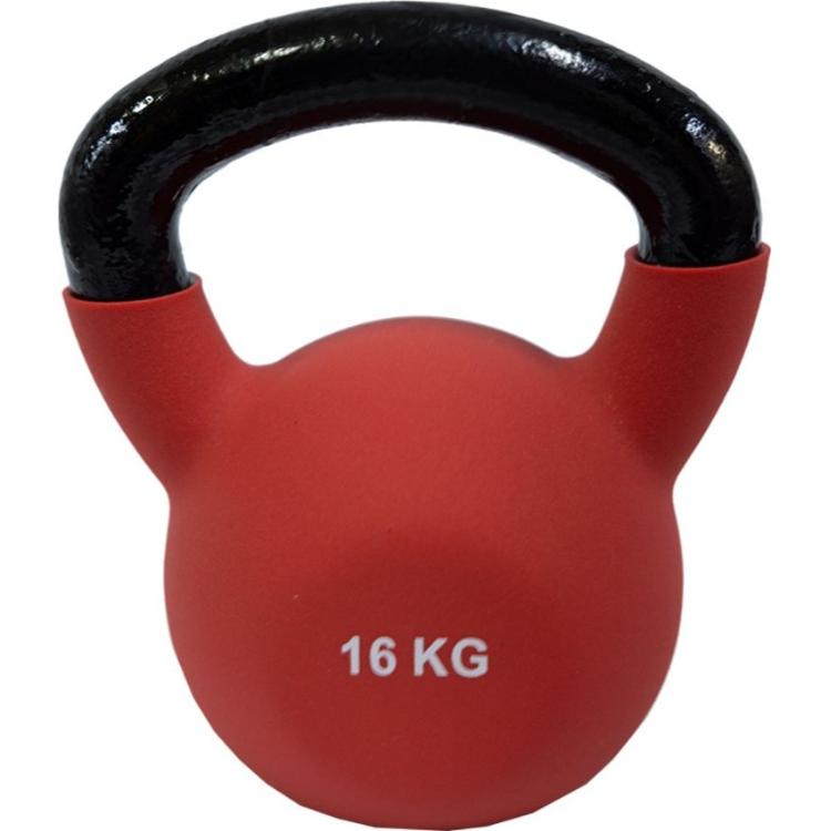 Površina uteži pa je prevlečena z neoprensko gumo. To omogoča zaščito rok med izvedbo vaj. Kettlebell z neoprensko gumo zaščiti tla, ko utež po koncu vadbe odložite. Teža uteži je 16kg.