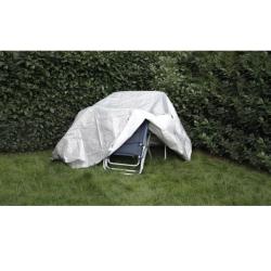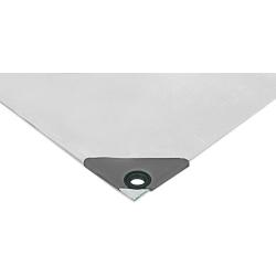PE zaščitna ponjava, laminirana na obeh straneh. Ojačani robovi z notranjo vrvico in dodatno ojačani vogali. Nerjaveče kovinske zanke so nameščene po vseh straneh.