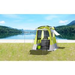 Šotor je zasnovan za hitro postavitev in enostavno zlaganje, kar omogoča hitro pripravo za kuhanje in brezskrbno shranjevanje. Vgrajeni prezračevalni sistemi zagotavljajo dober pretok zraka in preprečujejo nabiranje vlage, kar ustvarja prijetno in svežo notranjost.