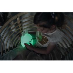 Prisrčna LED nočna lučka bo vsakdanji spremljevalec vašega malčka. Čez dan bo prikupna mehka živalca delala družbo vašemu malčku pri njegovi igri; ponoči pa bo poskrbela, da ga ne bo strah. S svojo nežno osvetlitvijo bo poskrbela, da bo sobica prijetno osvetljena in ne bo nobenih neprijetnih senc. Tako se bo vaš malček počutil varnega in se bo lahko potopil v miren spanec s čarobnimi sanjami. S priloženim daljincem lahko izbirate med 9-imi različnimi barvami, intenzivnostjo osvetlitve in časovnikom (15, 30 ali 60 minut).
