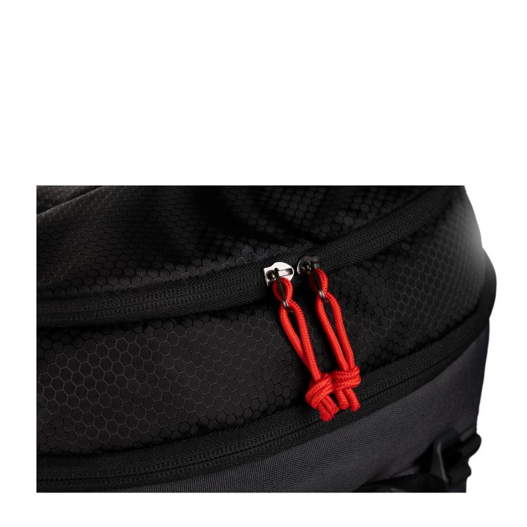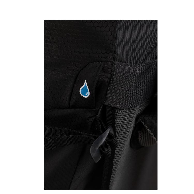 Vodoodbojen material in nepremočljiva dežna prevleka ohranita vsebino suho tudi ob nenadnem poslabšanju vremena. Ergonomska zasnova za stabilno in udobno nošenje.
