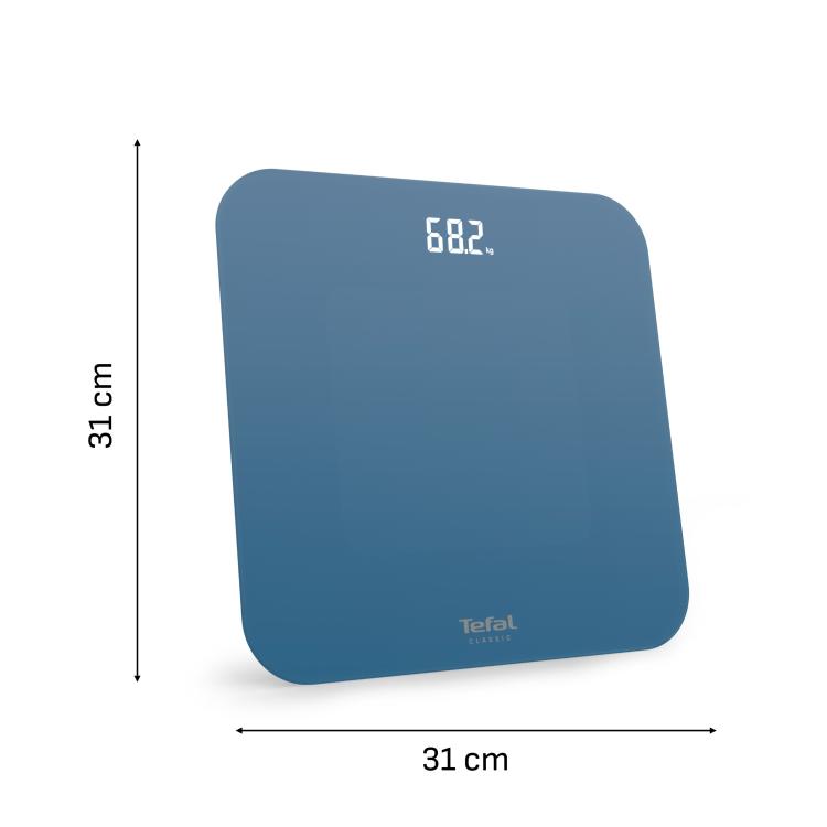 Dodajte eleganten pridih s Classic, našo tanko kopalniško tehtnico z veliko ploščo iz kaljenega stekla in nevidnim, enostavno berljivim LED-zaslonom. Njena visoka nosilnost 180 kg je idealna za vse oblike in velikosti: Preprosto stopite na tehtnico, da se samodejno vklopi, nato pa izberite med metričnimi in imperialnimi enotami. Tehtnica se po nekaj sekundah neuporabe samodejno izklopi. Classic je pripravljena za uporabo, priložene pa so tudi tri baterije AAA.