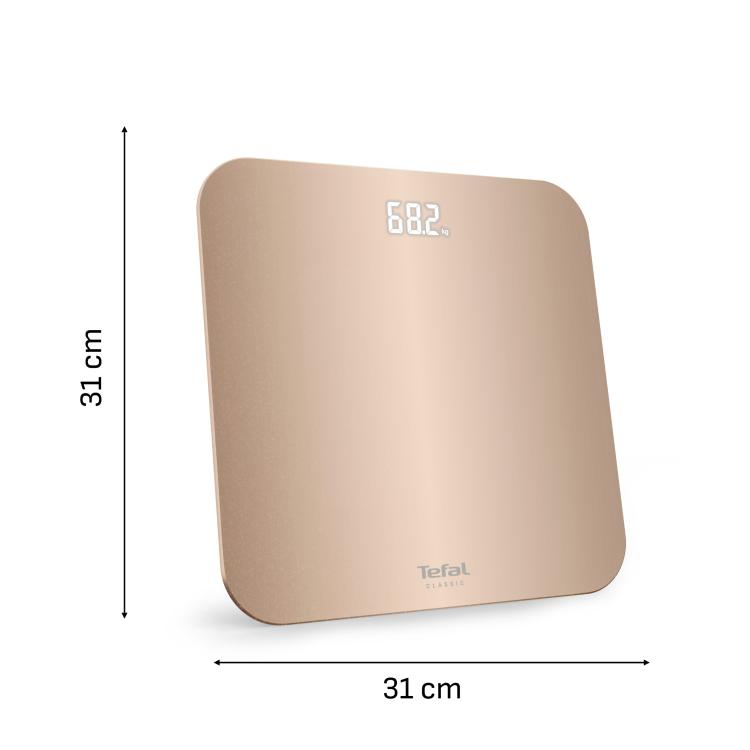 Dodajte eleganten pridih s Classic, našo tanko kopalniško tehtnico z veliko ploščo iz kaljenega stekla in nevidnim, enostavno berljivim LED-zaslonom. Njena visoka nosilnost 180 kg je idealna za vse oblike in velikosti: Preprosto stopite na tehtnico, da se samodejno vklopi, nato pa izberite med metričnimi in imperialnimi enotami. Tehtnica se po nekaj sekundah neuporabe samodejno izklopi. Classic je pripravljena za uporabo, priložene pa so tudi tri baterije AAA.