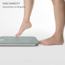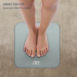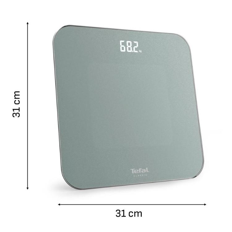 Dodajte eleganten pridih s Classic, našo tanko kopalniško tehtnico z veliko ploščo iz kaljenega stekla in nevidnim, enostavno berljivim LED-zaslonom. Njena visoka nosilnost 180 kg je idealna za vse oblike in velikosti: Preprosto stopite na tehtnico, da se samodejno vklopi, nato pa izberite med metričnimi in imperialnimi enotami. Tehtnica se po nekaj sekundah neuporabe samodejno izklopi. Classic je pripravljena za uporabo, priložene pa so tudi tri baterije AAA.