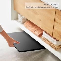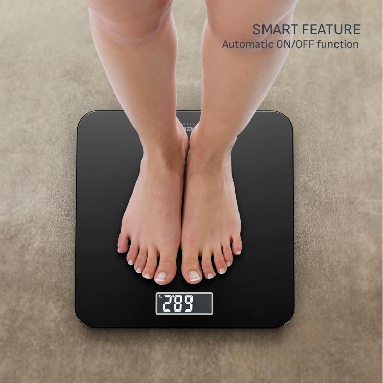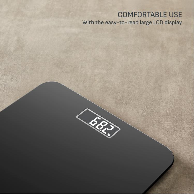 Preprostost in udobje! Pri tehtnici Premiss je vse v preprostosti. Naša tanka, moderna kopalniška tehtnica ima ploščo iz kaljenega stekla, lahko berljiv LCD-zaslon in nosilnost 160 kg. Preprosto stopite na tehtnico, da se samodejno vklopi, nato pa izberite med metričnimi in imperialnimi enotami. Tehtnica se po nekaj sekundah neuporabe samodejno izklopi.
