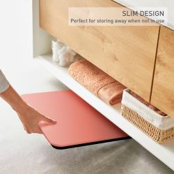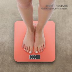 Preprostost in udobje! Pri tehtnici Premiss je vse v preprostosti. Naša tanka, moderna kopalniška tehtnica ima ploščo iz kaljenega stekla, lahko berljiv LCD-zaslon in nosilnost 160 kg. Preprosto stopite na tehtnico, da se samodejno vklopi, nato pa izberite med metričnimi in imperialnimi enotami. Tehtnica se po nekaj sekundah neuporabe samodejno izklopi.