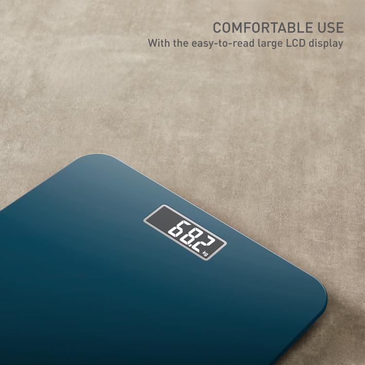 Preprostost in udobje! Pri tehtnici Premiss je vse v preprostosti. Naša tanka, moderna kopalniška tehtnica ima ploščo iz kaljenega stekla, lahko berljiv LCD-zaslon in nosilnost 160 kg. Preprosto stopite na tehtnico, da se samodejno vklopi, nato pa izberite med metričnimi in imperialnimi enotami. Tehtnica se po nekaj sekundah neuporabe samodejno izklopi.