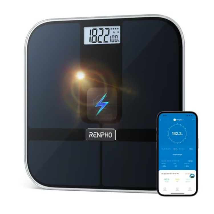 Inovativna in trajnostna tehtnica RENPHO se polni s pomočjo dnevne svetlobe ali umetne svetlobe. Poleg tega elegantna, sodobna zasnova doda stil vsakemu prostoru v vašem domu.