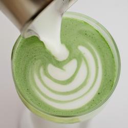 Vnaprej zmešano z polnomastnim mlekom v prahu za gladek matcha latte v barističnem slogu v le nekaj sekundah — brez stepanja ali dodatnega mleka.