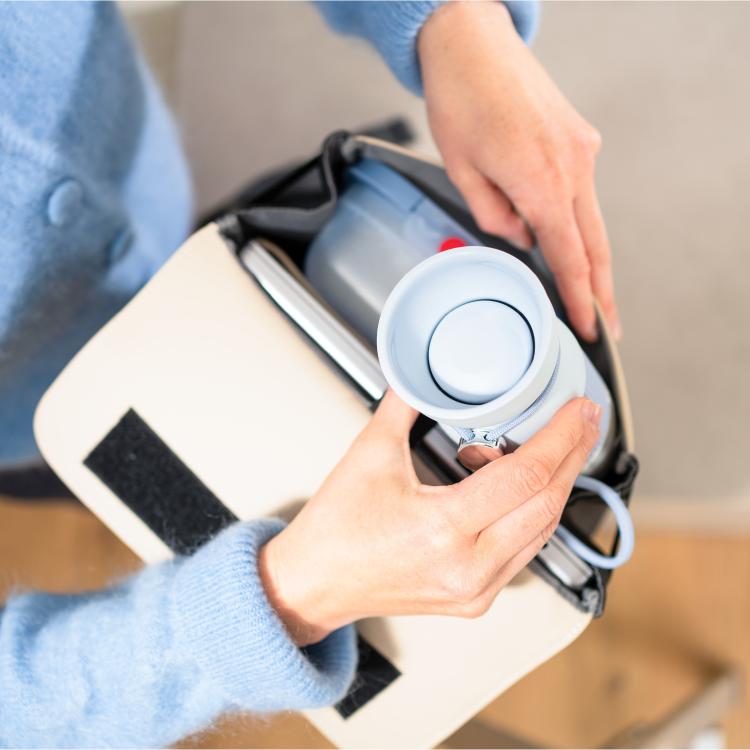 HIGIENSKO PITJE: Potovalni lonček s zaščitenim območjem za pitje za največjo higieno.