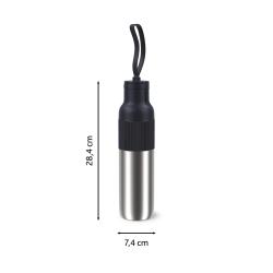 VEČKRATNA UPORABA: Večkratno uporaben potovalni lonček s telesom, izdelanim iz 90% recikliranega nerjavečega jekla.