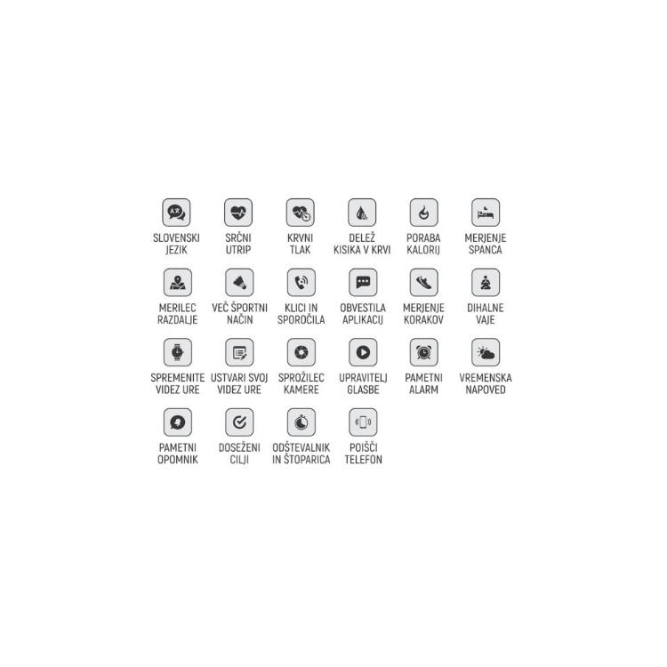 Opozarjala vas bo na vsa prispela obvestila in klice. Z njo boste lahko upravljali kamero na vašem mobilnem telefonu. Spremljala bo vse vaše športne dejavnosti, srčni utrip, krvni tlak, saturacijo s kisikom, porabljene kalorije in število korakov. Prav tako bo ura spremljala kvaliteto vašega spanja.