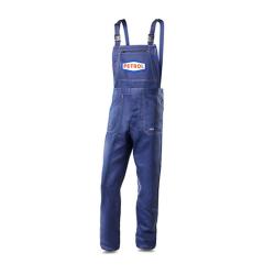 Bombaž. Trpežen in udoben bombažni delovni kombinezon Massaua. Odpiranje spredaj z gumbi. Stranske odprtine z gumbi. Dva žepa na pasu, velik žep na oprsniku z zapiranjem na zadrgo, zadnji žep z zapiranjem na gumb, žep za ravnilo na levi nogi. Elastičen pas zadaj. Elastične naramnice, nastavljive z zaponkami. Kontrastni barvni šivi. Modra barva.