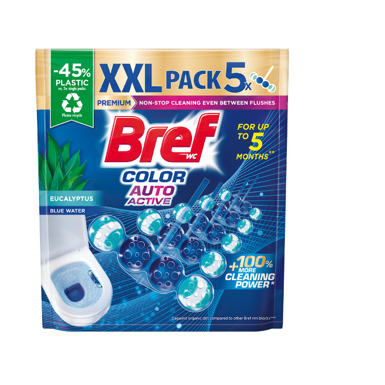 Bref Power Aktiv trda obešanka ščiti WC pred vodnim kamnom ter zagotavlja higiensko čistočo.