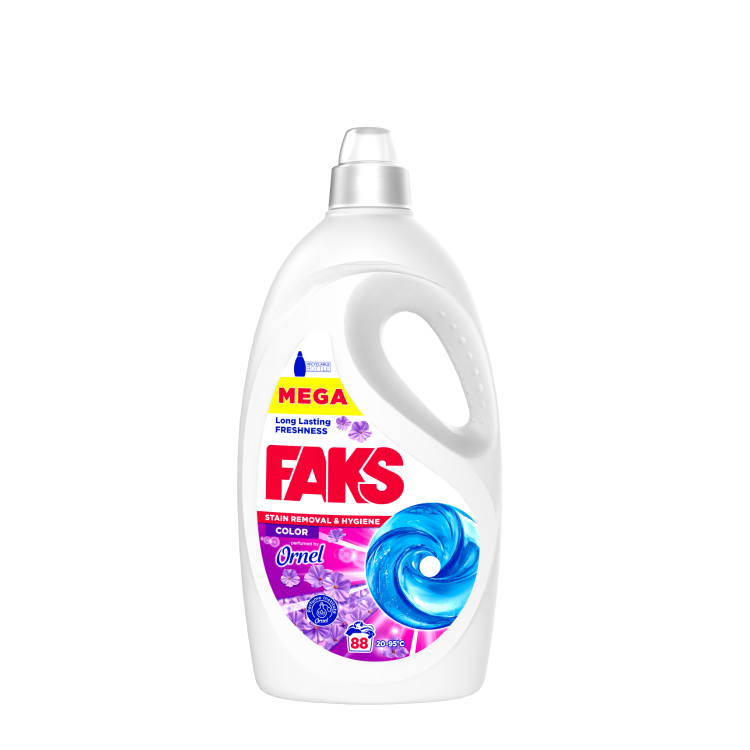 Novi Faks Parfumed By Ornel gel za pranje perila, vrhunske kakovosti. Nova še učinkovitejša formula je v skladu z najnovejšimi odkritji na področju pranja perila. Namenjen je za pranje barvnega perila, pri temperaturah od 20°C. Zahvaljujoč močni formuli, ki uporablja moč encimov, Faks Parfumed by Ornel z lahkoto odstranjuje madeže, tudi pri nizkih temperaturah pranja in nudi perilu globinsko čistočo.