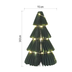 Odkrivajte čarobnost božiča s sodobnim okrasjem LED v obliki drevesa iz visokokakovostnega zloženega papirja. To elegantno božično drevo s 35 toplimi lučkami LED je popoln dodatek za vsak dom, pisarno ali praznično mizo. Zaradi zložljive oblike ne zavzame skoraj nič prostora, ko ga ne uporabljate, njegovo sestavljanje pa lahko zaradi močnih magnetov opravite v trenutku.