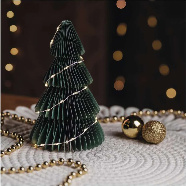 Ustvarite toplo, sodobno praznično vzdušje z elegantnim LED drevesom iz zloženega papirja, ki z mehko toplo svetlobo polepša vsak notranji prostor!
