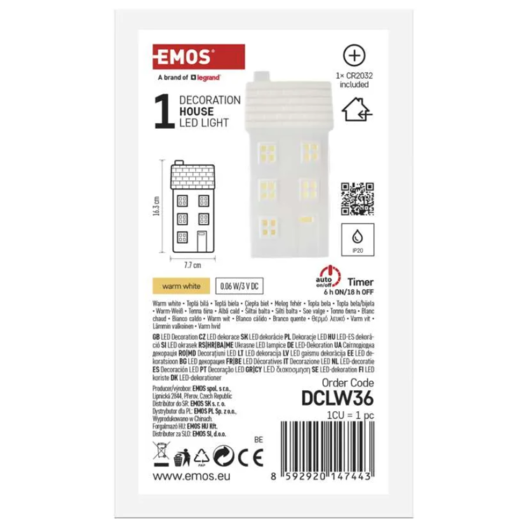 Hišico, ki jo napaja 1× baterija CR2032, ki je prav tako priložena, lahko postavite kjer koli - na okensko polico, polico, mizo ali celo na komodo. Ni potrebe po vtičnici, ni odvečnih kablov, samo čista estetika.